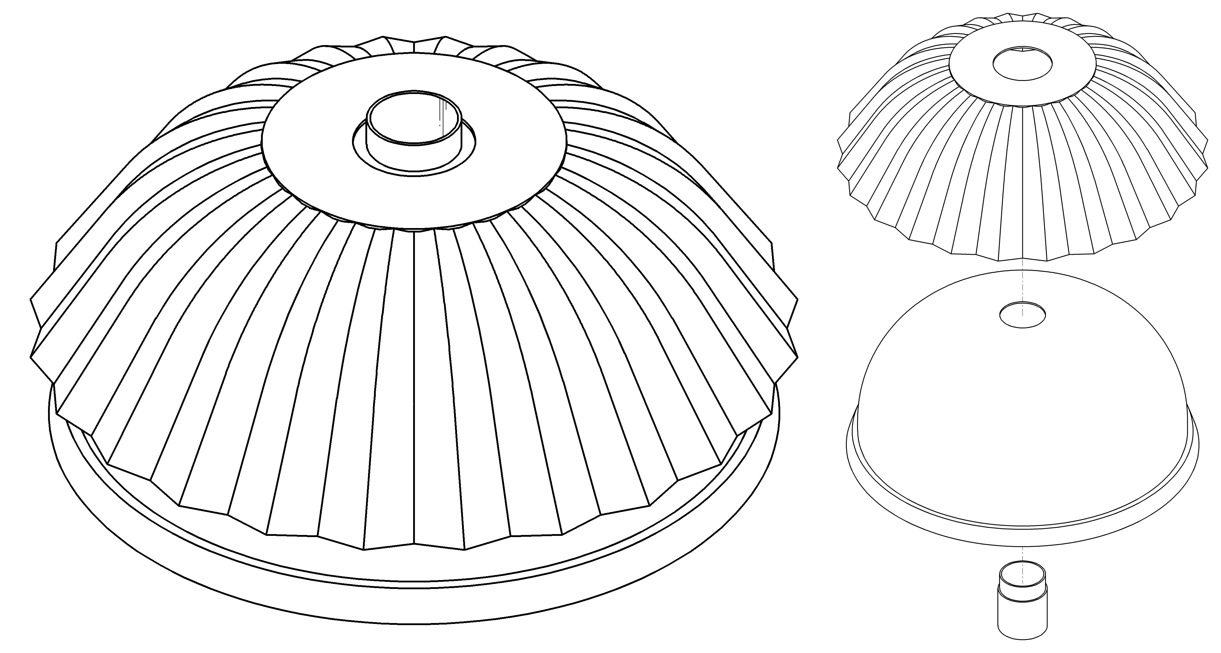 반구형 몸체 상면, 은박 재질의 덮개로 구성됩니다.